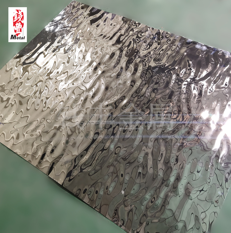 不銹鋼材質本身具有金屬質感和光澤感,給人一種高貴、豪華的感覺。不銹鋼水波紋板的表面經過拋光處理,呈現出亮麗的金屬光澤,反射出周圍環境的光線。這種金屬質感和光澤感可以與會所的豪華裝飾風格相得益彰,營造出奢華而精致的氛圍。